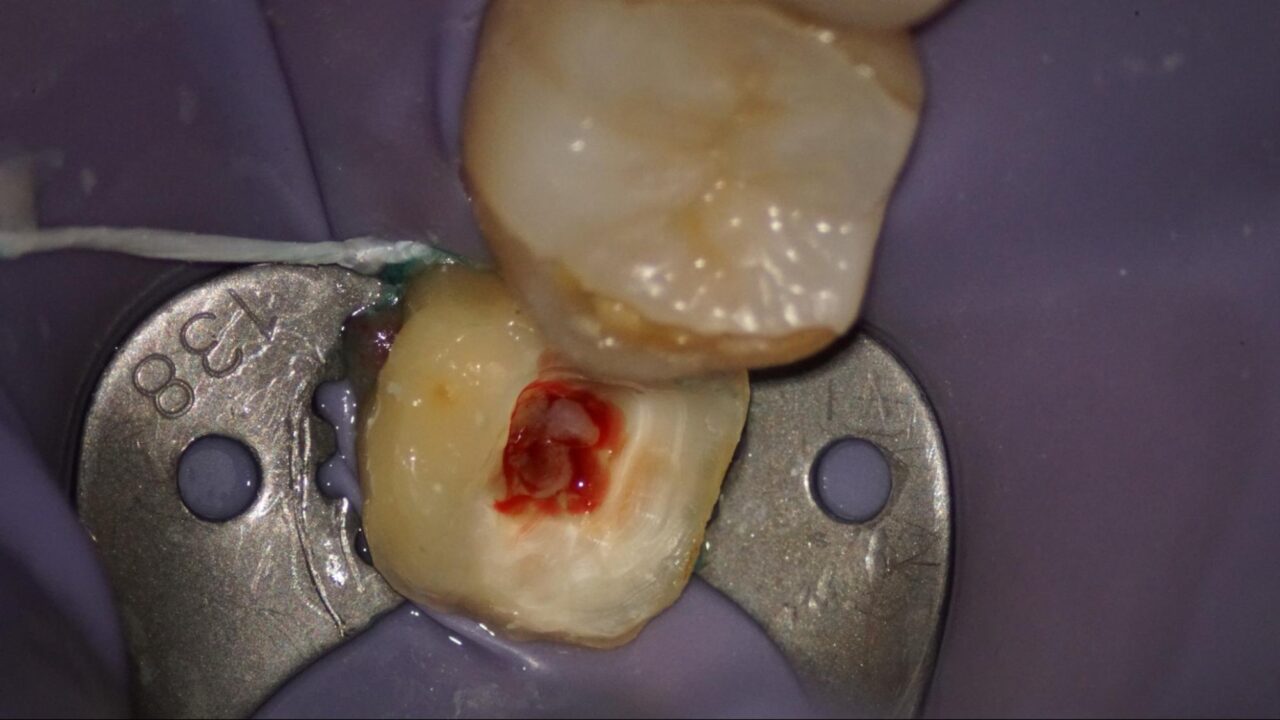 症例1:歯の中の神経が出血して歯髄炎を起こしているケース